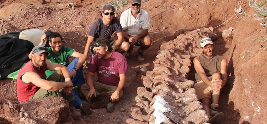 “The truth is that, as you can see in the photos, the specimen is terrific, because it is practically articulated and we have more than half of the tail, many hip bones and, evidently, there are still more bones into the rock, so we are going to have a few more years of excavations,” Dr. José Luis Carballido, who led the studies on Patagotitan told the CTyS-UNLaM Agency. He was the first to spot the remains of this new gigantic specimen during a field trip in the middle section of the Neuquén river valley.