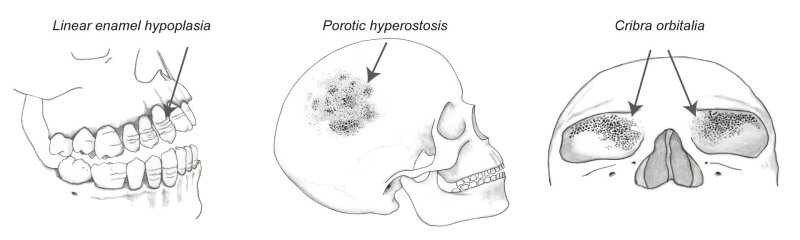 Drawings of skeletal indicators of non-specific stress evaluated in the study. Credit: Katharine Thompson