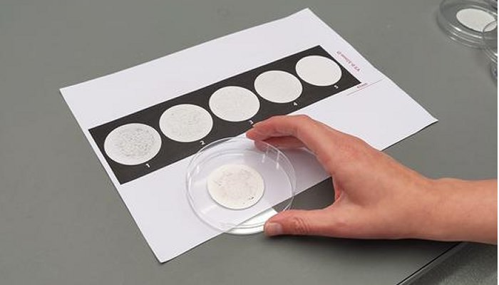 Textile samples were placed within the canisters, filled with water and then churned to replicate a washing machine cycle. The wastewater was then filtered, allowing the testers and observers to visually grade the shed fibres against the scale.