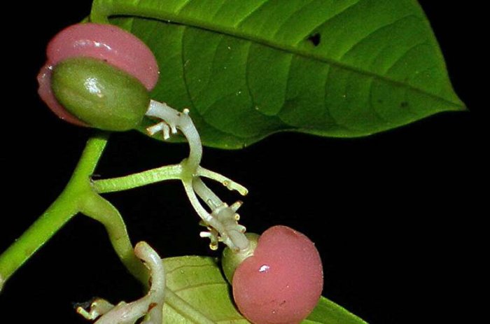 The new tree of life has reclassified the family and genus of Medusanthera laxiflora, a small tropical tree with bizarre fruit. Credit: Danilo Tandang