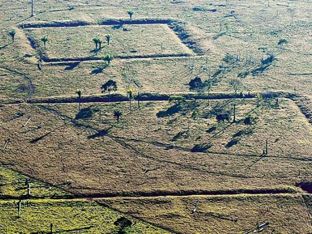 Previously hidden earthworks become visible due to large-scale deforestation of the region in the 1980s.