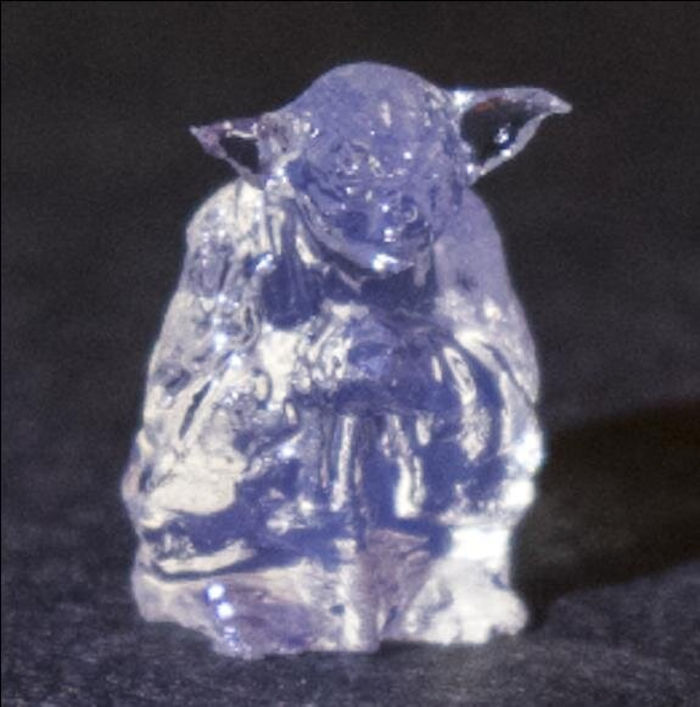 “Then we shine light on the container at different angles, causing the resin to solidify wherever the accumulated energy in the resin exceeds a given level. It’s a very precise method and can produce objects at the same resolution as existing 3D-printing techniques.” The engineers’ volumetric method can be employed for objects of just about any shape, and they decided to test it by creating a tiny Yoda. It took just 20 seconds for them to make the figurine, versus around ten minutes for a conventional additive-manufacturing process.