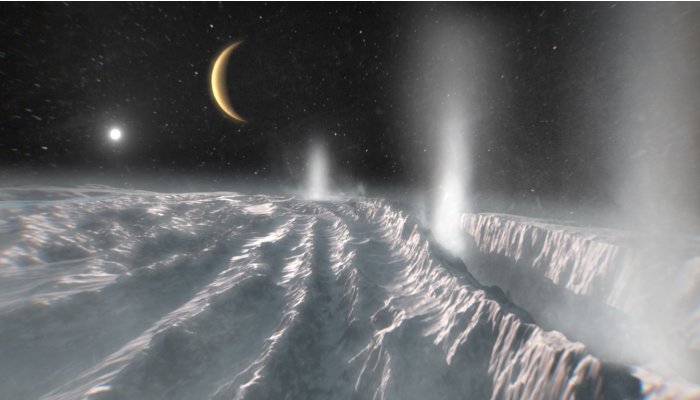 Eddie Gonzales Jr. – MessageToEagle.com – Organic molecules detected in the watery plumes that spew out from cracks in the surface of Enceladus could be formed through exposure to radiation on Saturn’s icy moon, rather than originating from deep within its subsurface ocean.