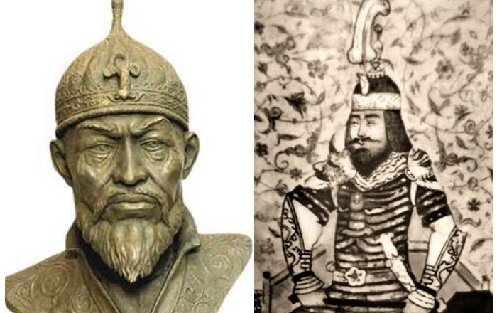 Left: Timur -Turco-Mongol Conqueror. Source ; Right: A Timurid-era illustration of Timur.