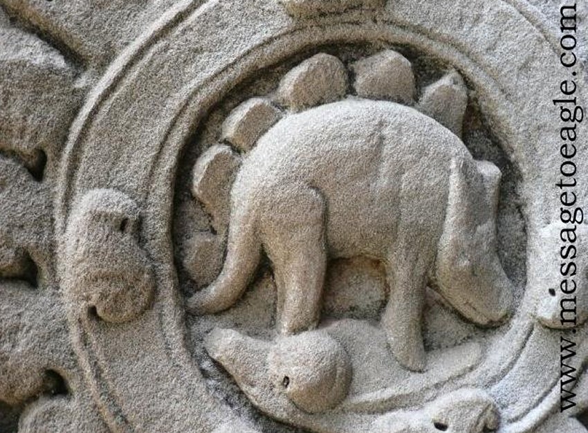 However, of the carvings stand out. It is an extraordinary relief of what looks like a stegosaur. Stegosaurus is a genus of armored stegosaurid dinosaur. They lived during the Late Jurassic period, some 155 to 150 million years ago in what is now western North America.